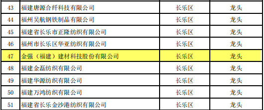 近日,福州市工業和信息化局公布了2021年福州市工業龍頭企業名單,金強建材榜上有名,榮獲福州市工業龍頭企業。