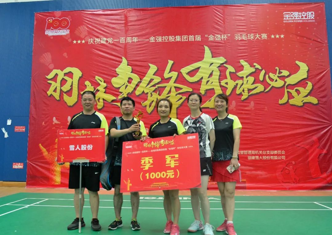 伴隨著頒獎的結(jié)束,金強控股首屆“金強杯”羽毛球大賽完美收拍,落下帷幕。本次賽事既是金強控股對中國共產(chǎn)黨建黨一百周年的謳歌獻禮,也為各合作單位、共建黨支部提供了一個交流溝通的平臺,為促進企業(yè)發(fā)展、提升黨建共建新格局起到強有力的推動作用。賽事雖已結(jié)束,精彩仍將繼續(xù),期待明年的“金強杯”再會!