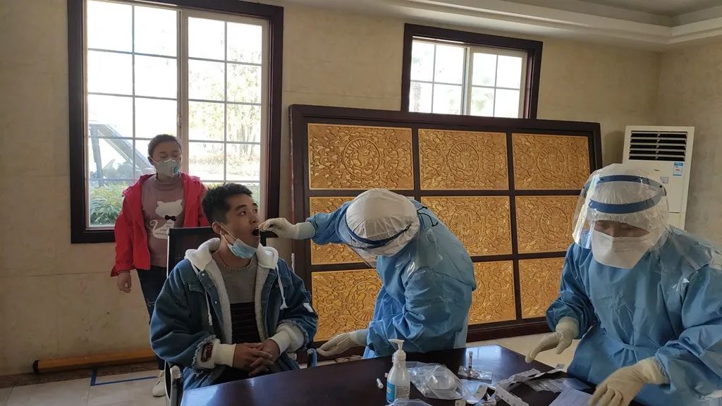 在檢測(cè)現(xiàn)場(chǎng),醫(yī)務(wù)人員身著防護(hù)服,戴口罩、護(hù)目鏡、醫(yī)用一次性手套,嚴(yán)格按照檢測(cè)規(guī)范流程進(jìn)行登記、核對(duì)信息、核酸采樣。整個(gè)核酸檢測(cè)流程嚴(yán)格規(guī)范且快速便捷。