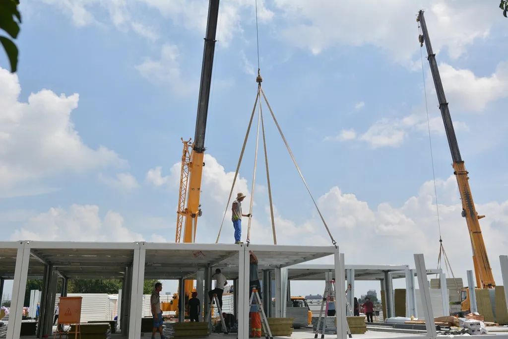 9月23日,已完成1層部分箱式房骨架安裝。項目預計國慶前基本建成。