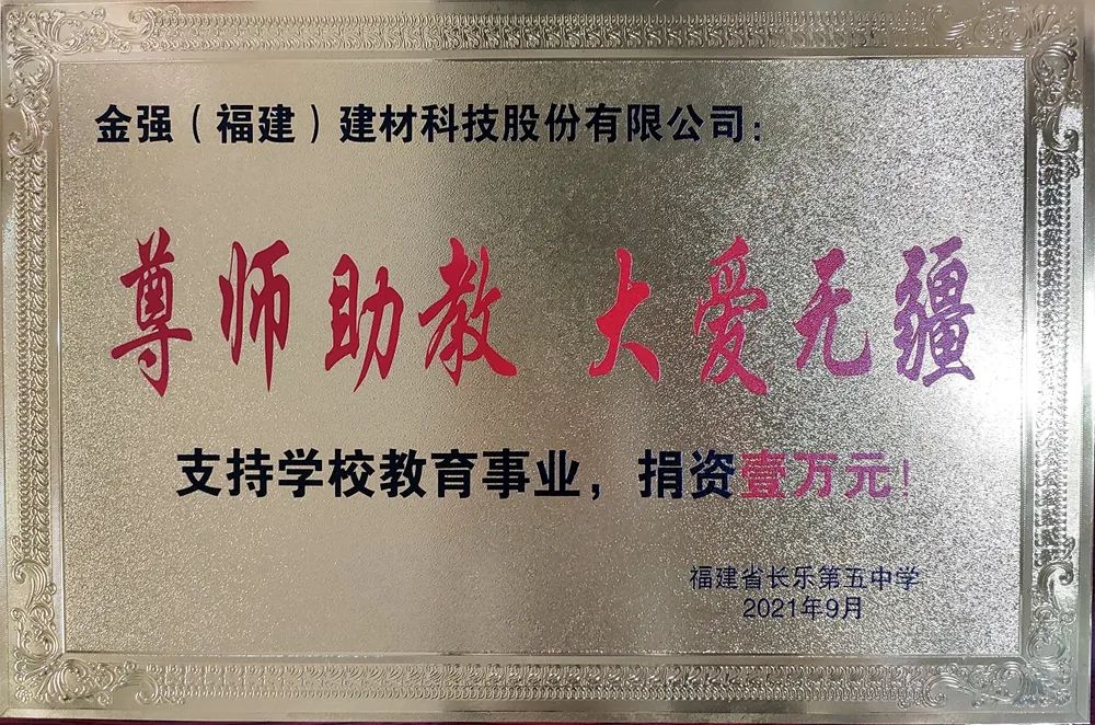 尊師助教,大愛無疆,金強建材支持長樂五中教育事業!