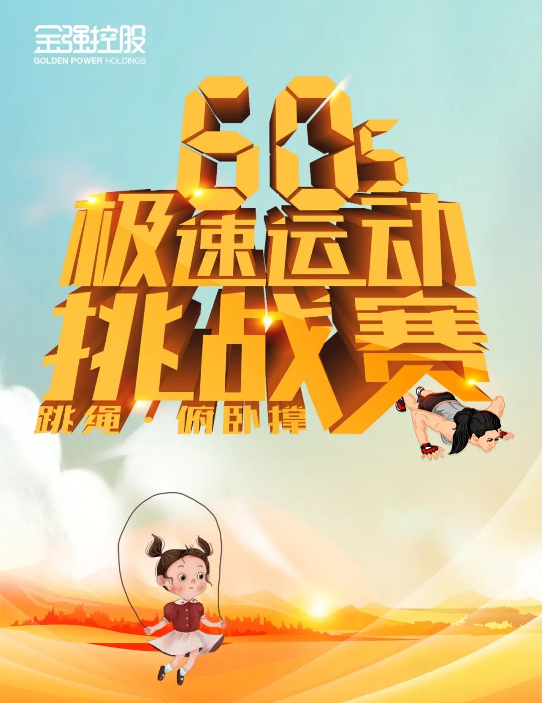 時間飛逝,2021年已進入第四季度,不妨用運動與熱血為這一年的結束增添一些精彩!為開展好疫情防控常態化下的企業文化活動,金強控股在線上舉辦“金強60s極速運動挑戰賽”!60s激發自我,60s挑戰自我,金強正式向你下“戰書”!具體活動內容請向下翻閱——