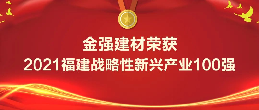 11月3日,2021年福建企業100強發布大會暨福建企業家大講壇在福州成功舉行。會上,省企業與企業家聯合會聯合福建省廣播影視集團、福建省社會科學院發布了“2021福建企業100強”“福建制造業企業100強”“福建服務業100強”“福建戰略性新興產業企業100強”四大榜單。金強建材榮膺“福建戰略性新興產業企業100強”第30名。