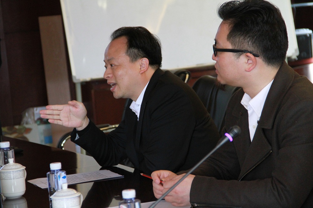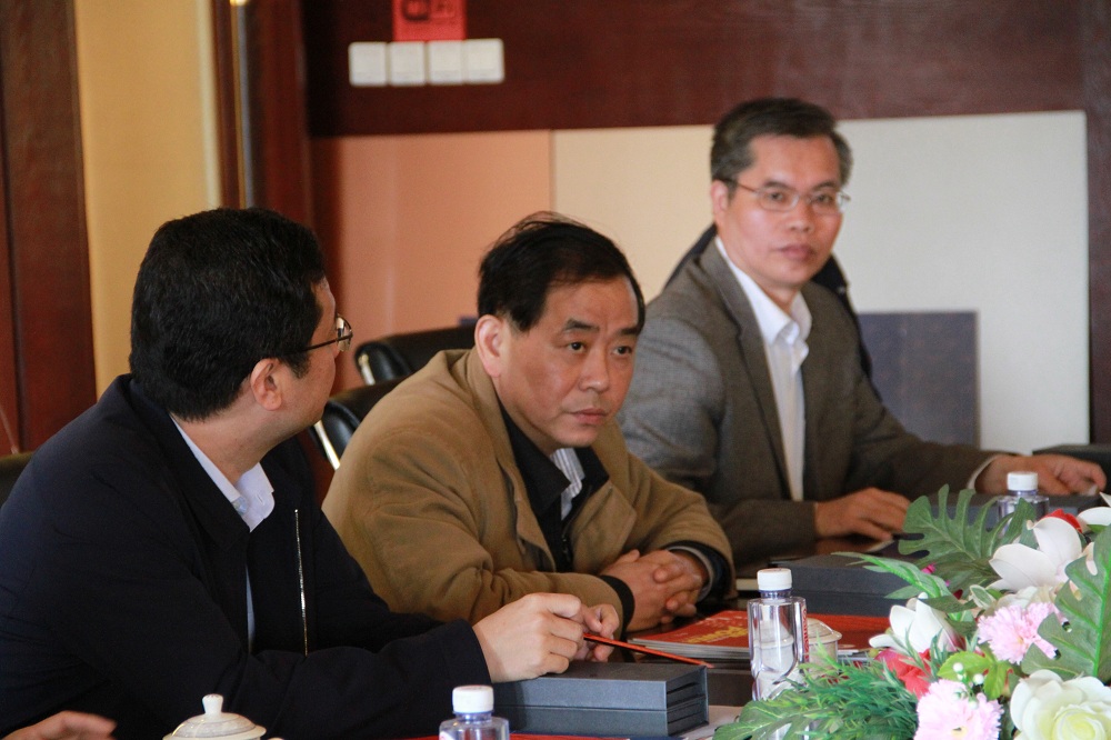 參觀結(jié)束后,福建省經(jīng)濟和信息化委員會主任翁玉耀、福州市經(jīng)濟和信息化委員會主任王國曉以及長樂市市長蔡勁松等一行人與金強控股集團董事長劉金鈴、金強建材科技總經(jīng)理黎忠和等工作人員展開了詳細座談。
