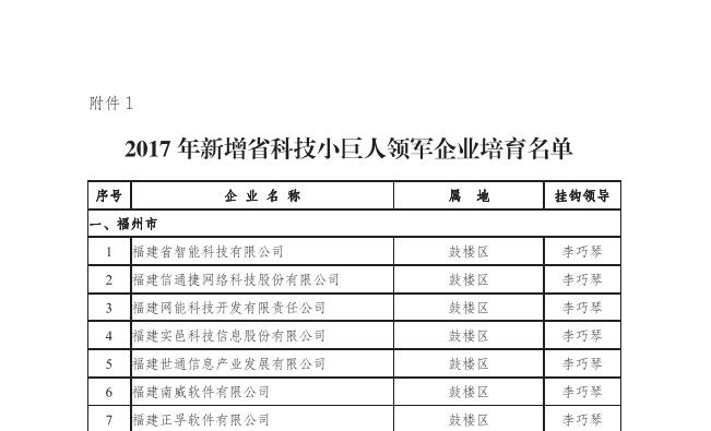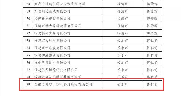 日前,福建省科技廳發布《關于公布2017年省科技小巨人領軍企業新增培育名單等情況的通知》,金強(福建)建材科技股份有限公司榜上有名。