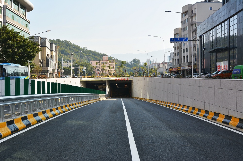 福州湖東東路下穿隧道系福州城區首條“穿山過河”的隧道工程,下穿晉安河和金雞山,連接三八路和東二環。全長1.9公里,其中隧道長度1.6公里,下穿隧道分為南北兩洞,總共有雙向四車道。