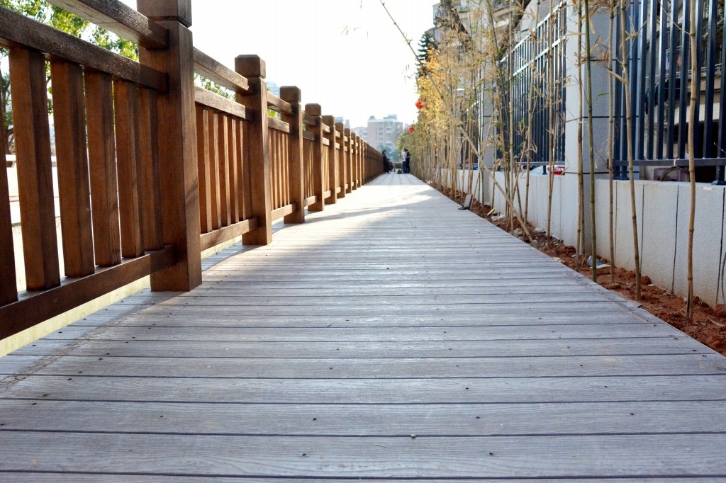 除高濕度環境外,琴亭河棧道在夏季還將處于長期日曬的環境中,因棧道長期暴露于室外,還將受到風、物等各種因素而產生的磨損,選用具有高抗沖擊性能、耐磨、耐腐蝕的TKK棧道板鋪設棧道比傳統防腐木、竹木、木塑等使用壽命更久。