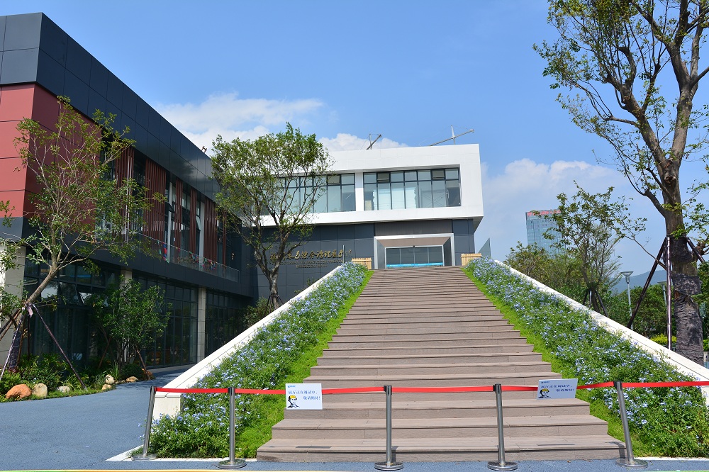 福州水系綜合治理展示館入口處設有層層而上的臺階。采用金強TKK棧道板安裝鋪設而成,表面為木紋肌理,具有天然木材質感,自然美觀,與階梯兩旁隨風搖曳的朵朵花兒相映成畫。