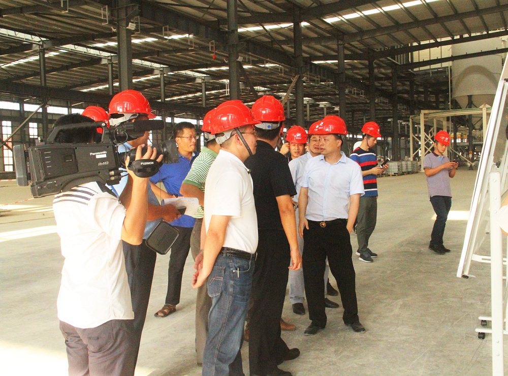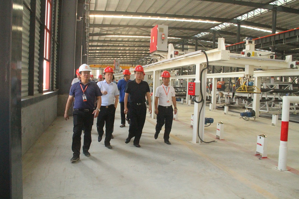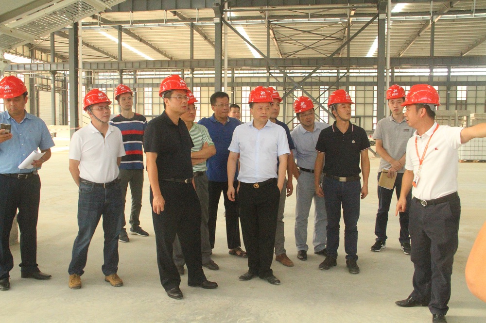 2018年10月8日,福州市長樂區區長蔡勁松率有關部門負責人蒞臨金強裝配建筑產業園調研考察。金強控股集團董事長劉金鈴、金強建材總經理黎忠和等人接待陪同。
