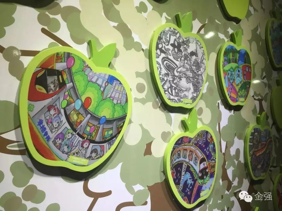 ▲ 金強(qiáng)彩繪板和雕刻板共同制作出的蘋果主題展示墻