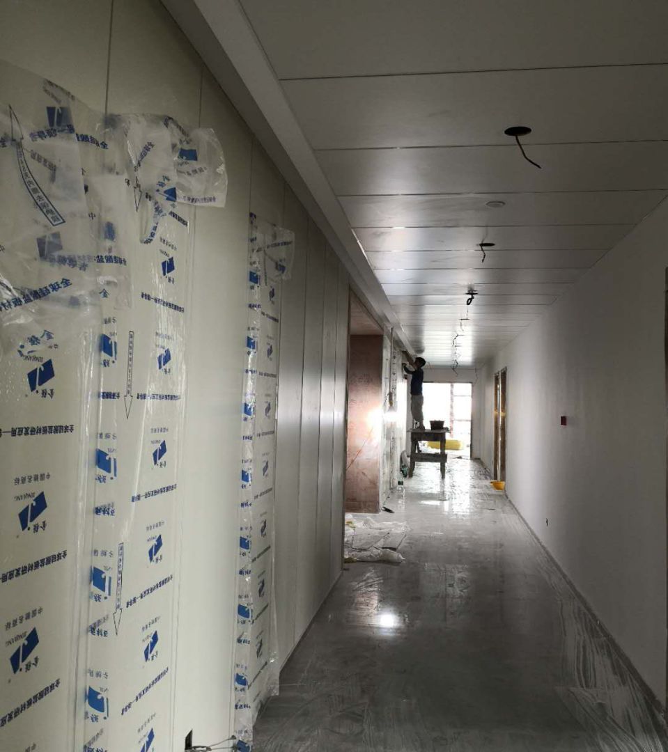 此外,金強ETT裝飾板零石棉、零甲醛,綠色環保。產品為工廠化生產,施工現場成品直接安裝。采用干掛法最新施工工藝,工序簡單,施工便捷,大大縮短長沙長房東郡大廈內隔墻施工工期。