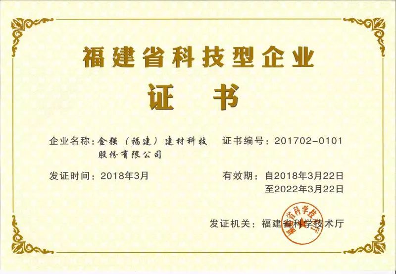 金強(qiáng)建材作為專(zhuān)注裝配式建筑系統(tǒng)、綠色新板材系統(tǒng)研發(fā)的科技型公司,擁有66項(xiàng)國(guó)家發(fā)明專(zhuān)利及實(shí)用新型技術(shù),參與30項(xiàng)國(guó)家及地方標(biāo)準(zhǔn)制定;通過(guò)ISO9001、ISO14001、OHSAS18001三體認(rèn)證,ISO14024中國(guó)環(huán)境標(biāo)志產(chǎn)品認(rèn)證;金強(qiáng)商標(biāo)被國(guó)家工商總局認(rèn)定為“馳名商標(biāo)”;榮膺:“十二五全國(guó)墻材革新創(chuàng)新標(biāo)桿企業(yè)”、“福建省守合同重信用企業(yè)”、“福建省科技型企業(yè)”、“綠色建筑選用產(chǎn)品證明商標(biāo)”、“省級(jí)(企業(yè))工程技術(shù)研究中心”等榮譽(yù)稱(chēng)號(hào)。