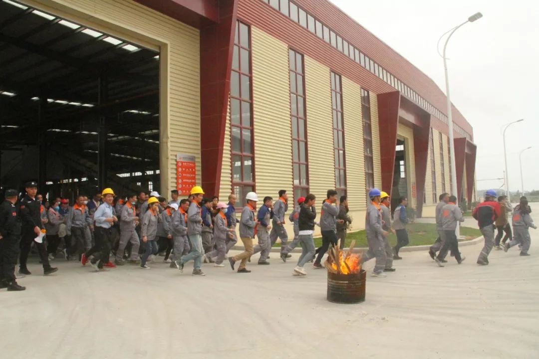 ▲在生產(chǎn)車間模擬起火點(diǎn)進(jìn)行人員逃生疏散