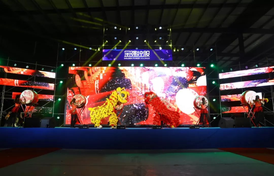 年會隨著開場視頻拉開序幕,主持人登臺宣布夢想盛典正式開始。在開場舞蹈《大鼓舞獅》前,集團總裁翁斌上臺為獅子點睛,寓意帶來幸福與吉祥,繁榮富貴,夢想成真。