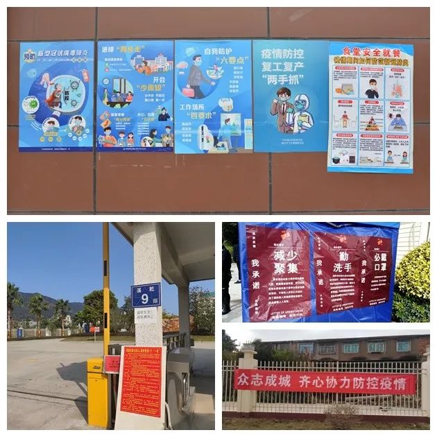 在金強園區的復工復產工作有序推進的同時,防控疫情的意識和工作仍然不可松懈,金強園區在入口、辦公場所、食堂、宿舍等處通過海報、宣傳欄等形式宣傳防疫知識,并持續性對員工返廠工作、健康狀況等做好信息監測。
