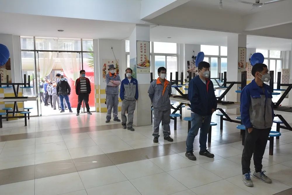 為了避免員工用餐時的健康風險,食堂將堂食形式改成打包形式。在食堂入口處設置專門體溫檢測點,并要求員工必須佩帶口罩,排隊打餐時每個人之間必須保持1米以上的間隔。
