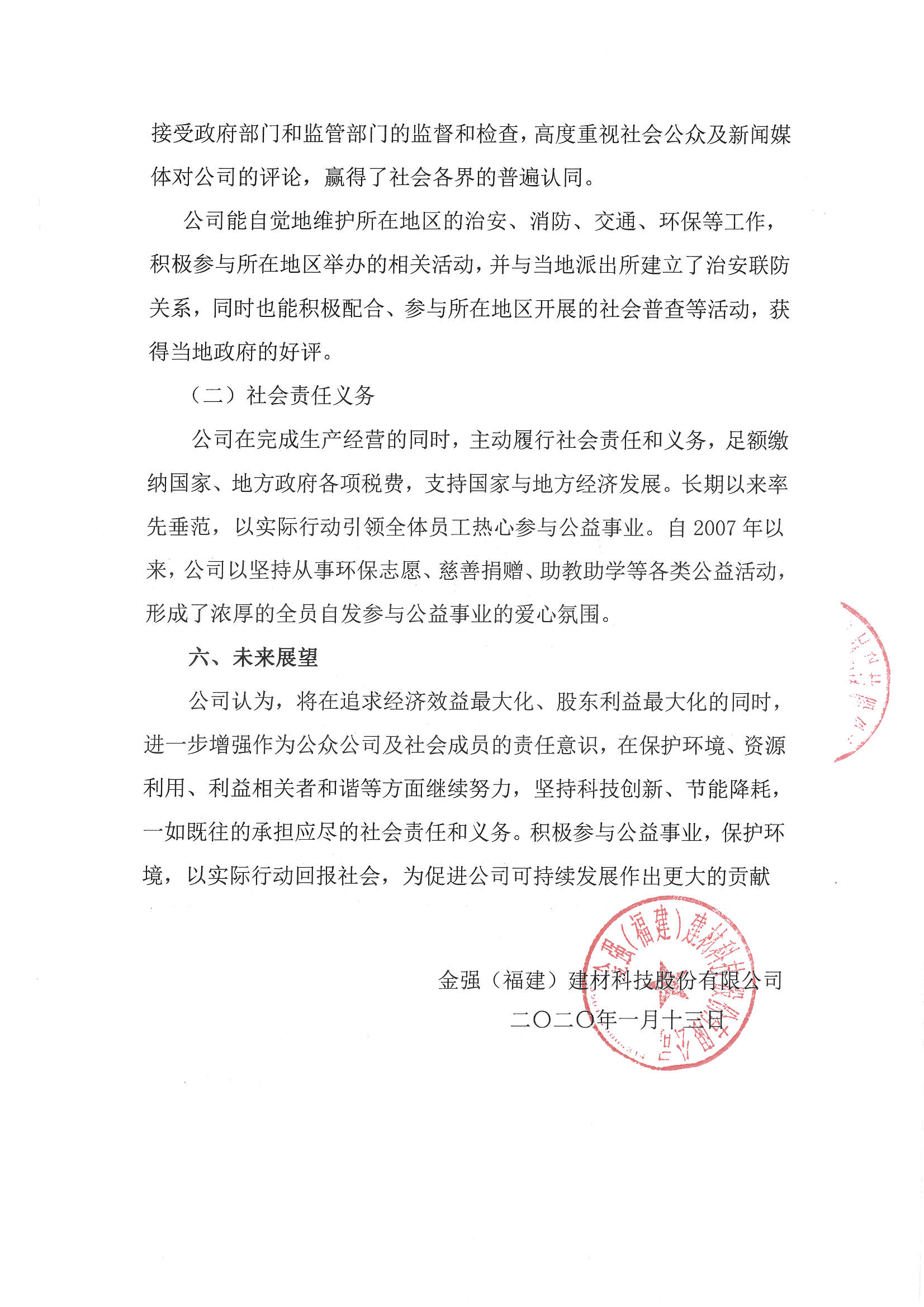 公示:金強(qiáng)建材履行社會責(zé)任報告