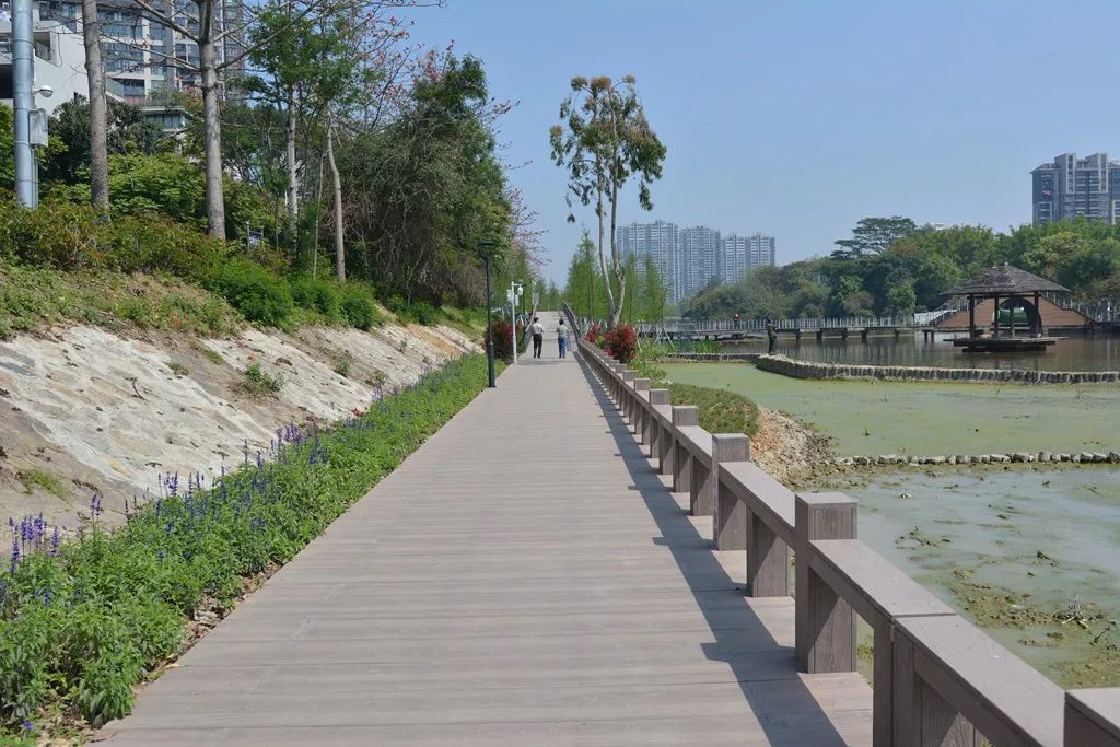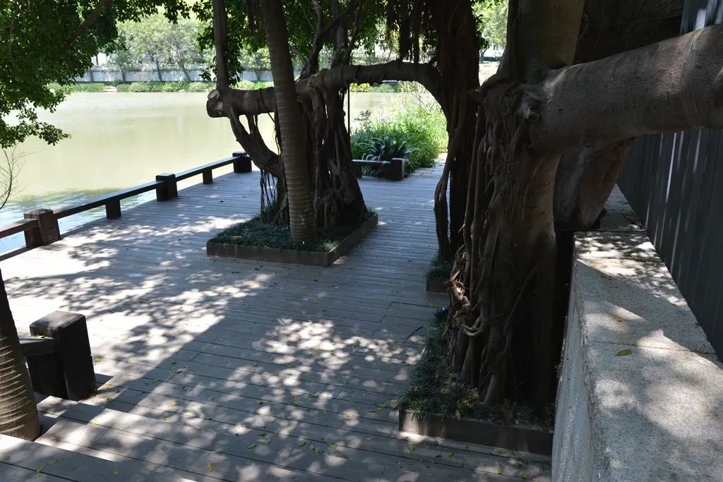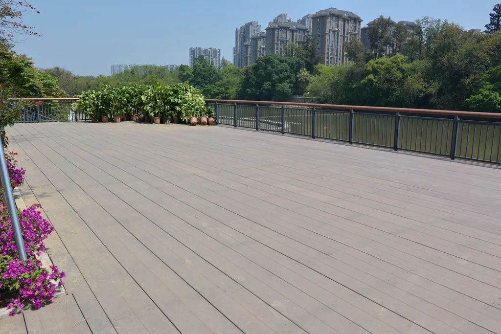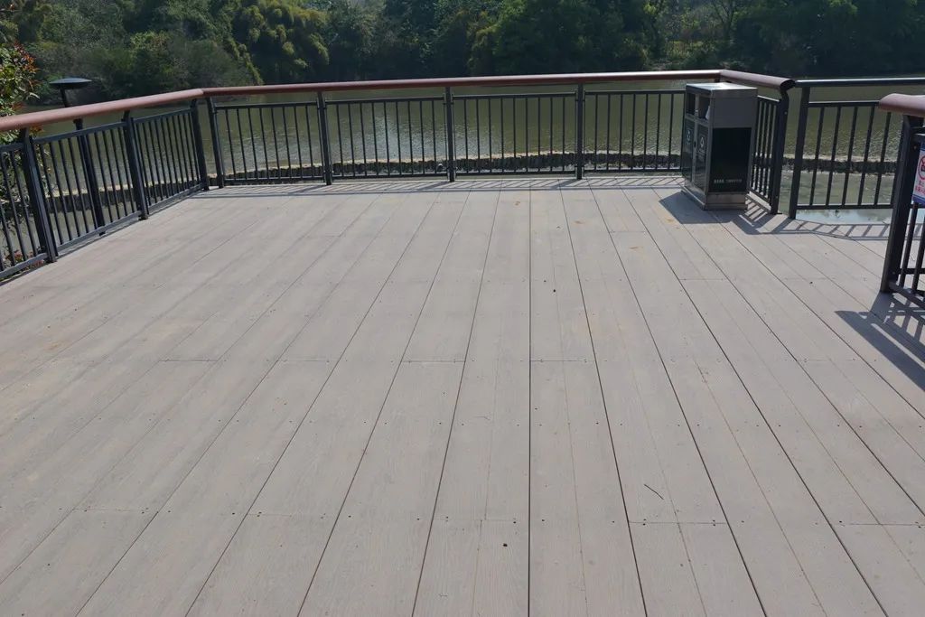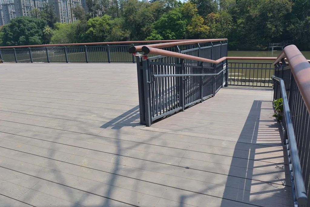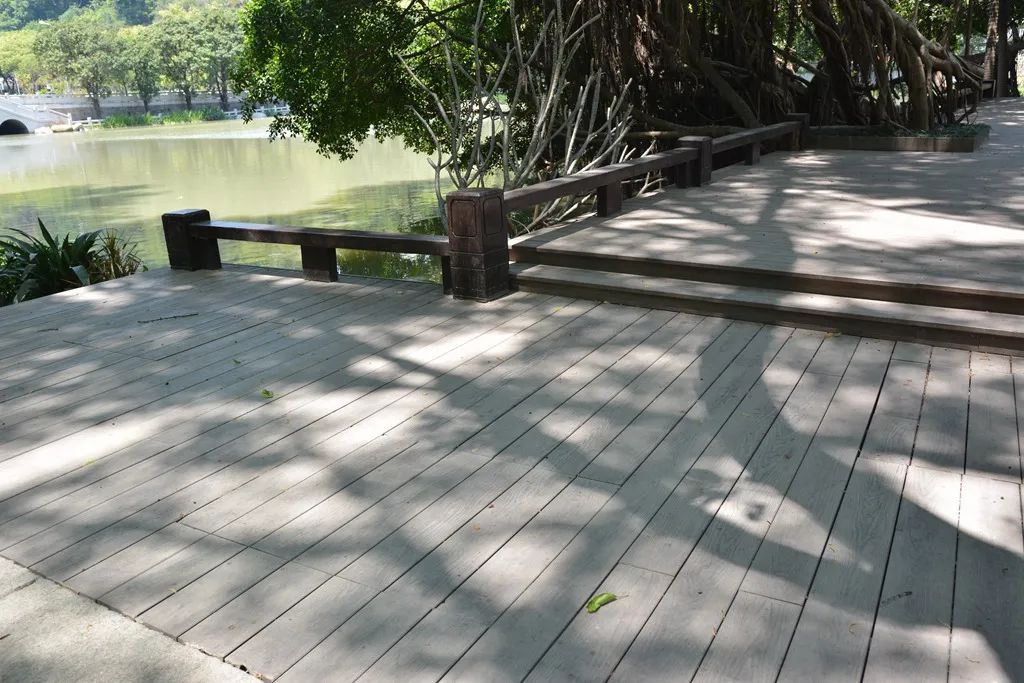 ▲福州黎明湖公園湖畔采用金強TKK棧道板鋪設(shè)地面