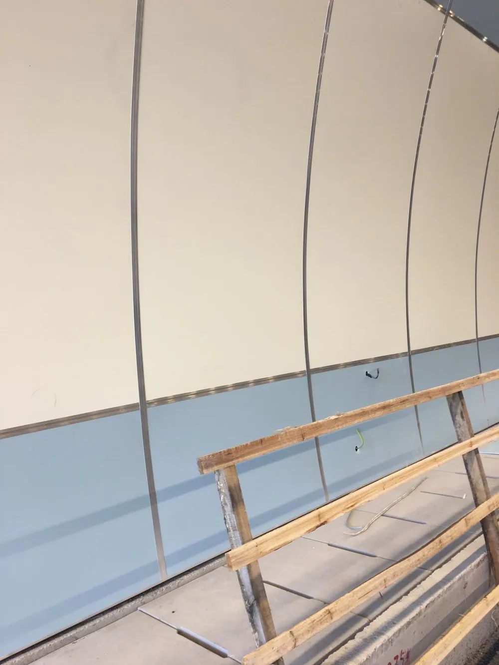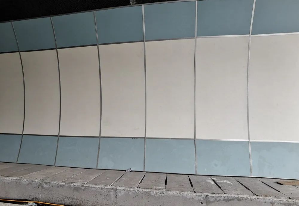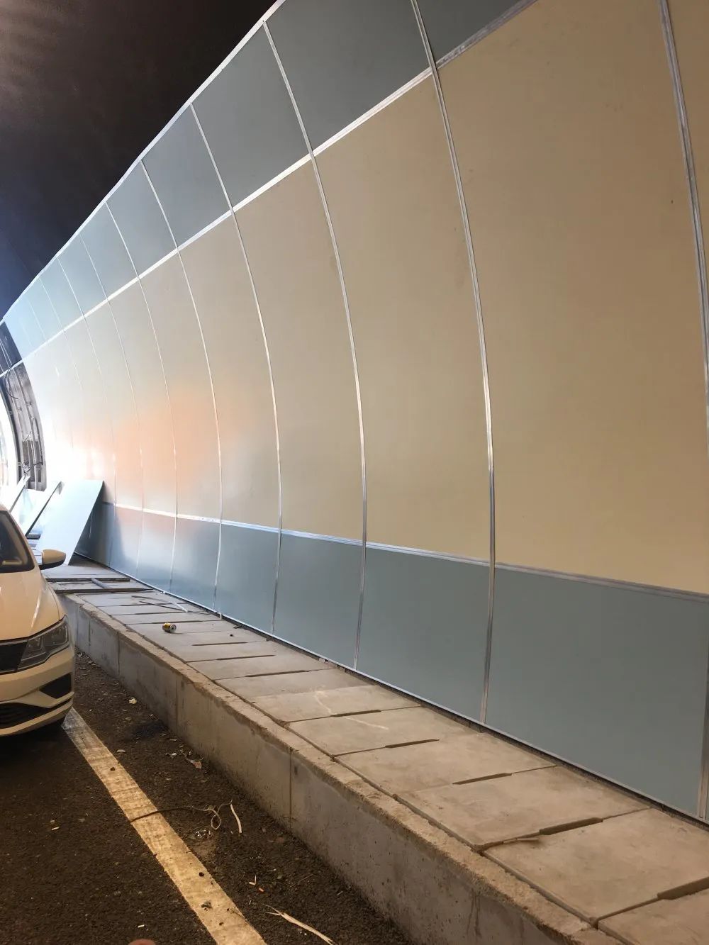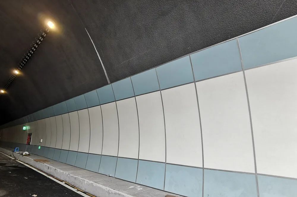 福馬路鼓山隧道拓寬工程采用金強ETT裝飾板裝飾隧道。金強ETT裝飾板可根據設計要求定制尺寸和顏色,現場采用干法施工。在隧道兩側完成龍骨骨架搭設后,可直接將金強ETT裝飾板搭設于龍骨上,可減少施工現場的建筑垃圾,安全環保。