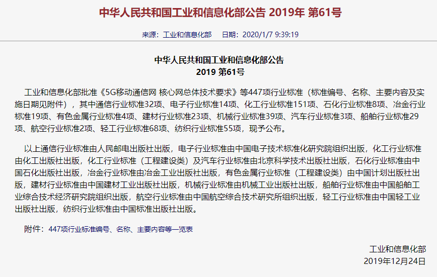 日前,中國工業和信息化部發布公告,批準《5G移動通信網 核心網總體技術要求》等447項行業標準,其中建材行業標準23項,包括由金強(福建)建材科技股份有限公司作為主編單位之一編寫的《纖維增強水泥棧道板》(JC/T 2549-2019),該標準將于2020年7月1日正式實施。