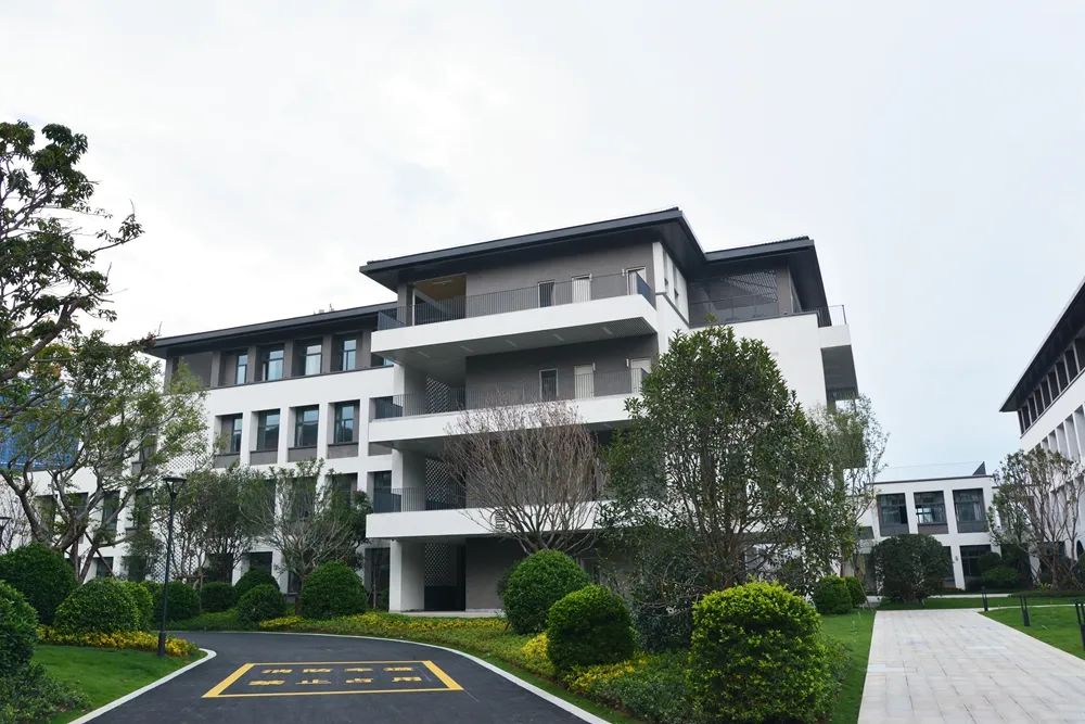 校內建筑風格主要分為兩種,一是以黑白灰為主色調的新中式風格,另一種是以紅橙為主色調的現代風格。質樸低調、優雅大方的建筑設計賦予學校頗具特色的“高顏值”,同時,建筑內部的“真材實料”更是以高標準選材。項目采用金強裝配式內外墻圍護系統技術,分別使用了金強MDD板應用于建筑內墻和金強PDD板應用于建筑外墻。