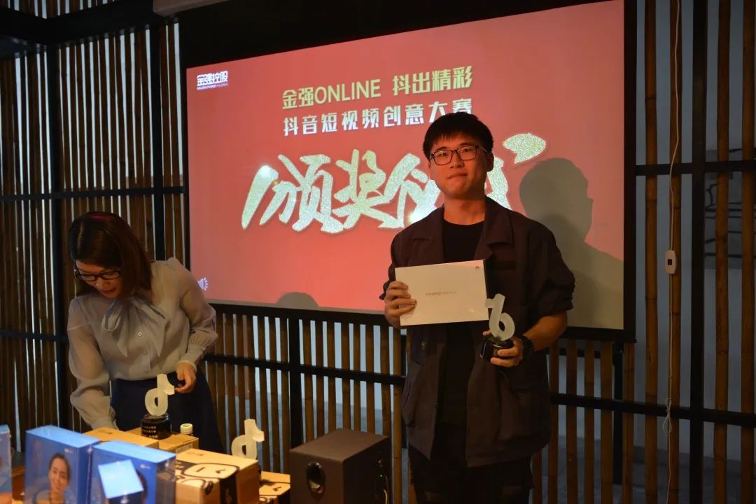 10月15日上午,備受期待的“金強online,抖出精彩”-抖音短視頻創意大賽活動頒獎儀式如約拉開帷幕,18位獲獎者悉數到場參加。金強控股集團董事長助理黃麗華女士擔任本次活動頒獎嘉賓。
