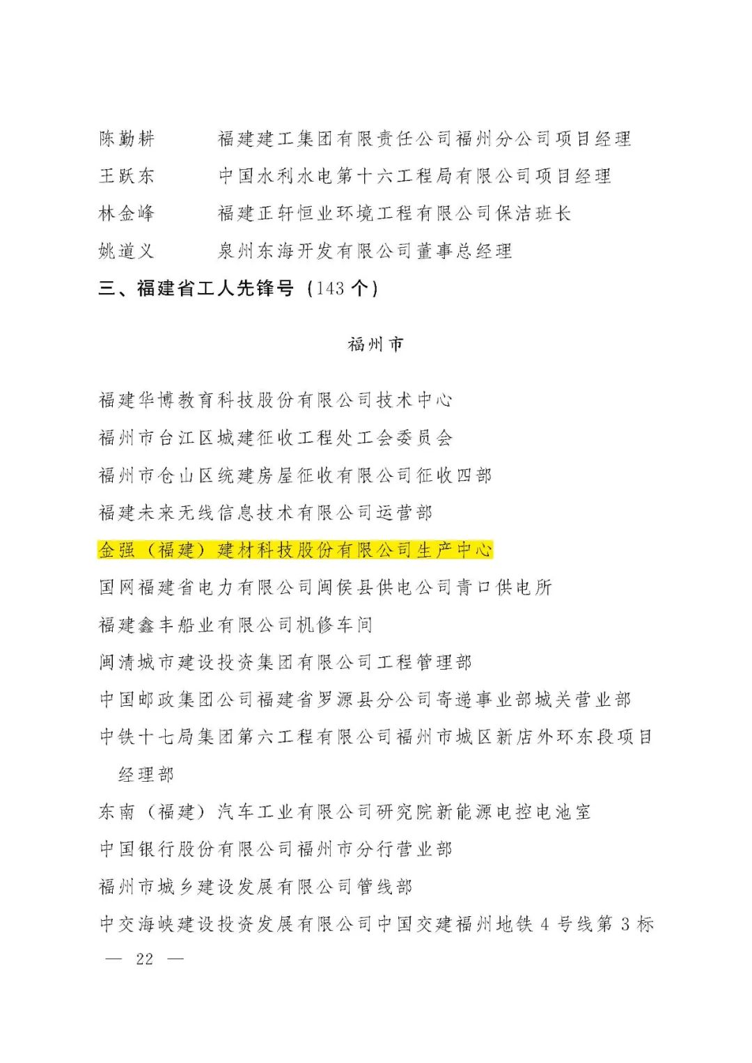 近日,福建省總工會下發《關于表彰2020年福建省五一勞動獎和福建省工人(五一)先鋒號的決定》(閩工〔2020〕68號文),金強(福建)建材科技股份有限公司生產中心獲評2020年“福建省工人先鋒號”榮譽稱號!