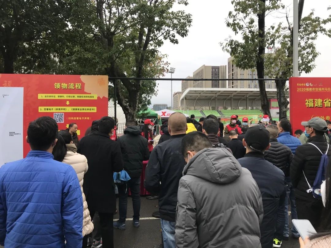 12月18日,跑團參賽成員先后到海峽奧體中心領取福馬參賽包。寒風凜冽,卻吹不滅大家對于即將到來的比賽的期待之心。