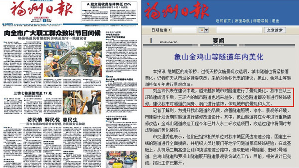 劉金鈴董事長美化城市隧道的建議已被福州市采納